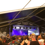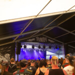 Am nächsten Morgen schauen wir uns nach dem lustigen Auftakt von KADAVERFICKER – Leichentrunk, der von der Bühne geworfen wird inklusive – einmal das Infield näher an. Wie immer ist das Festival kreisförmig aufgebaut und die Merch- und Essensstände ordnen sich im Kreis ab der Bühne an. Das Konzept ist super, da man von allen Stellen des Geländes schnell und gut die Stände erreichen kann. Die Preise sind auch hier leider etwas gehobener geworden, aber damit steht das Festival nicht alleine da. Hervorzuheben sei der legendäre BRUTZ UND BRAKEL Stand, bei dem es wohl die besten Longdrinks und Kurzen des Festivals „Marke Eigenbau“ gibt und der „BRATHAHN STATT SATAN“ Stand, wo ihr euch eines der besten halben Hähnen Deutschlands holen könnt. Unbedingt antesten! Danach geht es für uns zur Band 1914 weiter, die aus der Ukraine stammt und im ersten Weltkriegsgewand Black Metal Songs mit jenen Inhalten beisteuert. Das Konzert ist wirklich extrem stark, die stetigen Ansagen in der Pause in Bezug auf den Ukraine Krieg nerven allerdings ab dem dritten oder vierten Mal sehr. Das finden wir doch sehr überzogen und es hätten ein oder zwei Ansagen auch getan.