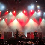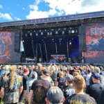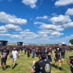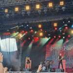 Am Freitag streichen wir aufgrund der erneuten Hitze die Auftaktbands und wagen erst 14:35 zu Burning Witches den Schritt vor die Hauptbühnen. Die Damen aus dem Süden liefern ihren klassischen Heavy Metal – dem Publikum gefällt es. Es folgt Bloodbood aus Schweden, die eine Power-Metal-Hymne nach der anderen um die Ohren schießen, bevor Schmier von Destruction nicht schlecht staunt, dass sich fast 45 Minuten ein Circle Pit vor der Bühne bildet und sagt: „Ihr seid doch verrückt bei der Hitze!“. Equilibrium überzeugen auch mit neuem Sänger und gebalter Live-Energie an diesem Tag, sowie die folgenden Party-Bands wie Versengold und Korpiklaani. Anschließend checkt der Airbourne Sänger schon mal, ob bei der Nachbarbühne bei Arch Enemy der Umbau auch funktioniert und rennt zwischen den Bühnen hin und her. Wie immer eine großartige Rock´n Roll Show der Australier. Bei Arch Enemy merkt man, dass alles 100%ig aufeinander abgestimmt ist und eine grandiose und energiegeladene Show herauskommt, die sicherlich für einige das Highlight des Abend war. Das Infield ist zu diesem Zeitpunkt auch rappelvoll.