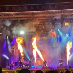 Am nächsten Tag werfen wir wie immer einmal bei knallender Sonne einen tieferen Blick auf das Festivalgelände. Hier gibt es neben den 2 Hauptbühnen, die es jedem Festivalbesucher ermöglichen wirklich JEDE Band im Line-up komplett zu sehen, wieder die Merch- und Futtermeile im hinteren Teil des Geländes. Verändert hat sich zum Vorjahr nicht wirklich viel – wieso auch? Das Konzept geht auf, das Gelände ist vom Campground schnell erreichbar und im Infield kann man wirklich von jedem Punkt aus die Musiker auf der Bühne einsehen und genießen. Das hebt das Rock Harz von anderen Festivals hervor. Leider ist bei „The Dark Side of the Moon“ die Hitze schon unerträglich und auch die im fast 15 Minuten Takt schießenden Feuerwehrschläuche geben nur bedingt Entwarnung. Der Planet brennt und es ist sichtlich sehr unangenehm mehrere Stunden vor der Bühne zu Verweilen. Den folgenden Bands wie Mr. Hurley & die Pulveraffen (wir schauen uns das Ganze vom VIP-Bereich aus unterm Sonnenschirm an), die grandiosen Apokalyptischen Reiter, die Partyband Hämatom und Feuerschwanz (mit grandioser Feuershow) tut das überhaupt keinen Abstrich. Und das Feuer soll an diesem Abend noch nicht enden: Wie immer präsentieren In Flames einen fetten Mix aus Licht und Feuer auf der Bühne, bevor es mit Ritualmusik von Skald in den Mittelnachts-Act Onslaught übergeht. Und für 1 Uhr nachts gibt es gleich 2 riesige Moshpits vor der Bühne der Engländer, die ebenfalls nicht schlecht staunen. Ein würdiger Abschluss des Donnerstags!