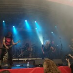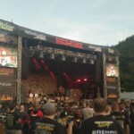 Am Freitag begeben wir uns über den Campingplatz. Die Stimmung hier ist bereits morgens schon wieder so, wie Sie auf einem Heavy Metal Festival sein sollte. Wir machen halt an Eckberts Metal Treff auf Campingplatz 4. Hier gibt es eine Tasse Kaffee und Rührei für schlappe vier Euro auf die Hand, belegte Brötchen für einen Euro und dazu auch ein kühles Blondes. Frisch gestärkt geht es weiter aufs Infield, wo der Opener Solace bereits in der prallen Mittagssonne ein ordentliches Brett abliefert. Es folgt mit BRDigung ein Deutschrock-Konzert, dass direkt Bock auf Mehr macht. Zwar fehlt Gitarrist Jonas, der gerade frisch Vater geworden ist, aber sein Ersatzmann rockt die Bühne mindestens genauso. Die vier Jungs spielen eine Hymne nach der anderen und stehen aus unserer Sicht zu früh im Line-up an diesem Tag. Ein späterer Slot wäre gut gewesen. Wir wechseln zur Nebenbühne und schauen uns die Kasseler Jungs von Foley an. Ihr Modern-Metal knallt ins Publikum und regt zum Headbangen an. Tolle Nummer mit viel Potenzial. Mit Ost+Front folgt ein Highlight für viele Zuschauer. Die Band erinnert zum Teil an Rammstein und präsentiert sich blutverschmiert und geschminkt mit einer gewaltigen Bühnenshow und ihrem Industrial-Metal in deutscher Sprache. Fetter Gig, der Bock auf mehr macht! Und die Stimmung geht bei der Nachwuchsband Leidbild aus Frankfurt auf der Nebenbühne direkt weiter. Sänger Chriss weiß genau, wie er das Publikum auf seine Seite ziehen kann und rennt die Bühne auf und ab – am Ende gibt es sogar eine Klettereinlage auf die Bühne. Deutschrock vom Feinsten! Auf der großen Bühne wird bereits das Feuerwerk für die folgende Band Pyogenesis im Hintergrund getestet. Mit Ihren Metal/Punkrock Programm wird auch hier das Publikum mitgerissen und darf sich über viel Pyrotechnik links und rechts und auf der Bühne freuen. Auf der Nebenbühne macht sich Reaper – ebenfalls aus Kassel – bereit. Ihr gradliniger Heavy Metal bringt viele Haare zum fliegen. Die Band gibt es seit Anfang der 80er Jahre. Mit Rose Tattoo hat man sich die Alt-Rocker ins Boot geholt. Sänger Gary Anderson gibt den Takt an und die Band liefert ein großartiges Konzert. Es folgen Amorphis, die aus technisch absolutes Potenzial zeigen, aber von der Stimmung her aus unserer Sicht nicht mit den vorherigen Bands auf einer Ebene stehen können. Der Gig ist eher etwas für das Auge und zum Genießen. Eisbrecher zieht abschließend alle Kapitel und holt die letzten Kräfte aus dem Publikum heraus. Auf der Nebenbühne folgt eine Onkelz Coverband und rundet den Tag ab.