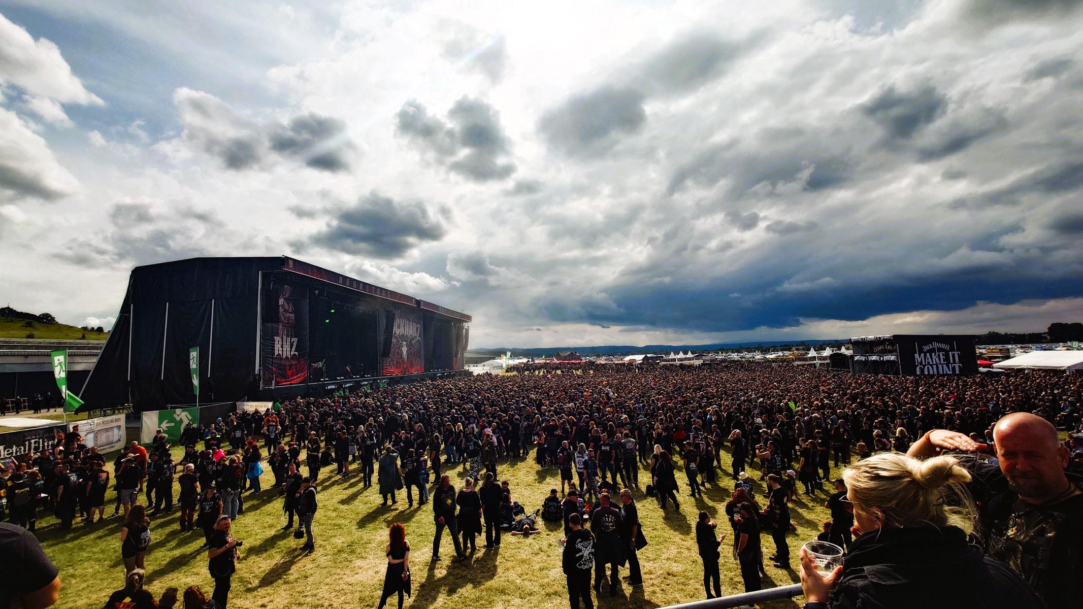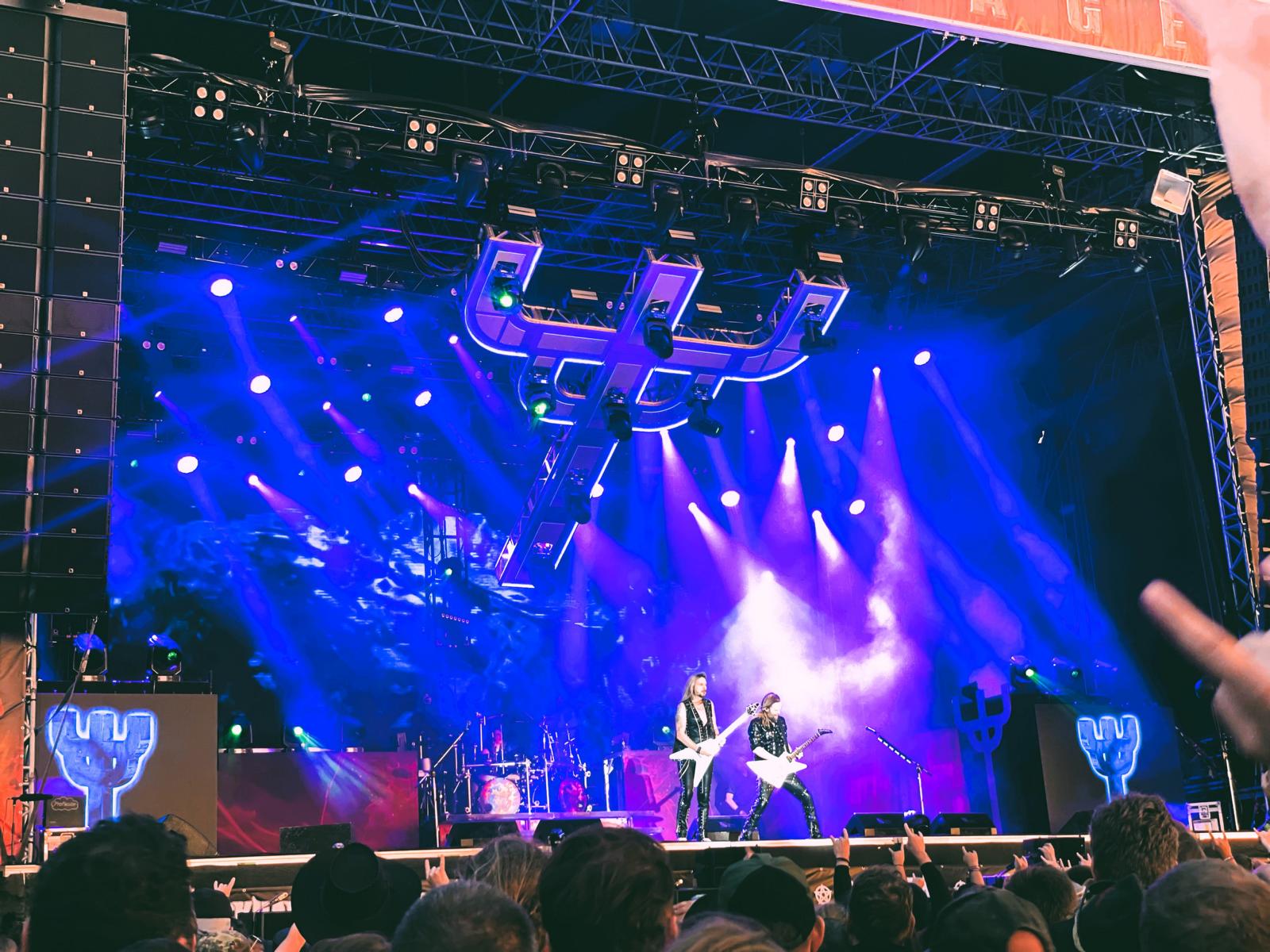 Der Tag beginnt für uns heute mit der schwedischen Band Bullet. Der 80er Jahre Speedmetal ist genau richtig, um sich für den restlichen Tag „warm-zu-bangen“ – hier sollte noch einiges folgen in den kommenden Stunden. Varg bringt danach eine Ladung Paganmetal gepaart mit härteren Elementen und Ruhnen auf die Bühne, während Peavy mit Rage anschließend auf Zeitreise durch über 30 Jahre Bandgeschichte geht. Hier finden einige Klassiker ihren Platz im Set und wie immer rundet der Klassiker „Higher than the Sky“ das Konzert am Ende ab. Nach einer kleiner Plauderpause im Backstage des Festivals, schauen wir uns schließlich die Jungs von Hatebreed aufgrund einer Einladung von der Bühne aus an. Mit einem phantastischen Blick in die untergehende Sonne und die Menschenmassen, gibt es eine knappe Stunde lang groovigen Hardcore made in USA direkt auf die Fresse. Hammerfall spielen danach ein buntes Set aus alten und neuen Klassikern, die Ansagen zwischen den Liedern hätten für uns manchmal etwas kürzer ausfallen können. Danach folgt der Headliner Kreator: Hinter Drummer Ventor ragt der riesige Schädel empor und nach den ersten Minuten entsteht ein riesiger Moshpit vor der Bühne. Man merkt die Professionalität der Jungs deutlich: Sound, Bühnenshow, Licht und die Band sind in Höchstform und hier passt alles perfekt zusammen. Unser Höhepunkt des Tages.